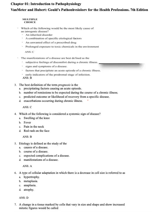Test Bank Gould's Pathophysiology for the Health Professions 7th Edition by VanMeter