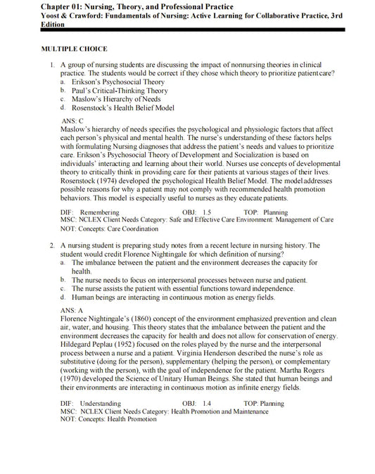 Test Bank Fundamentals of Nursing: Active Learning for Collaborative Practice 3rd Edition