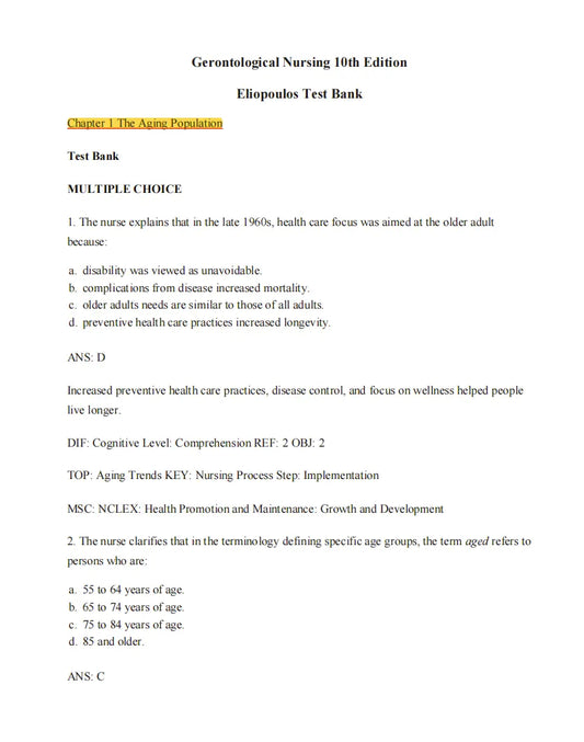 Test Bank Gerontological Nursing 10th Edition by Charlotte Eliopoulos