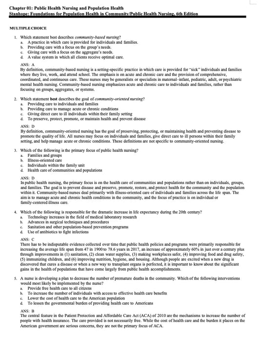 Test Bank Foundations for Population Health in Community Public Health Nursing 6th Edition by Stanhope