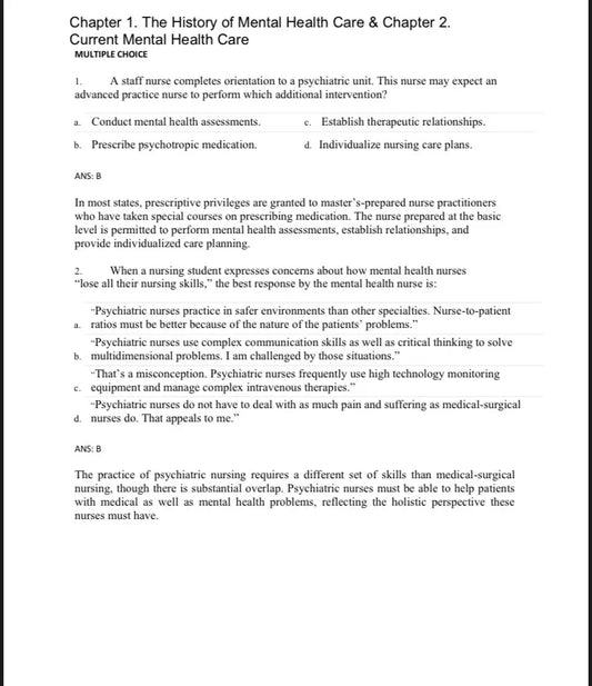 Test Bank Foundations of Mental Health Care 8th Edition by Morrison-Valfre